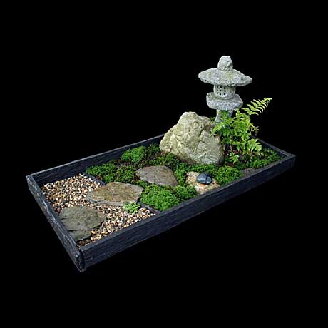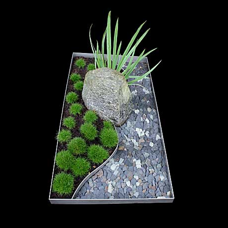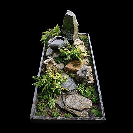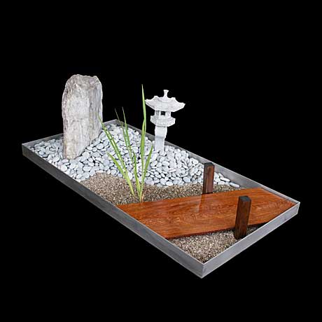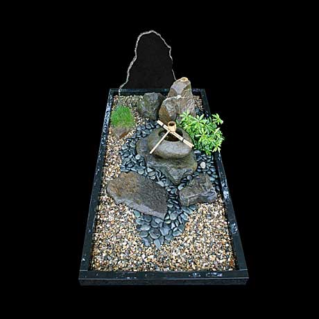 Hierdoor geïnspireerd ontwerpt Peter van Lune van Seigan Grafontwerp grafmonumenten met een miniatuur Japanse tuin op basis van scènes uit de natuur.