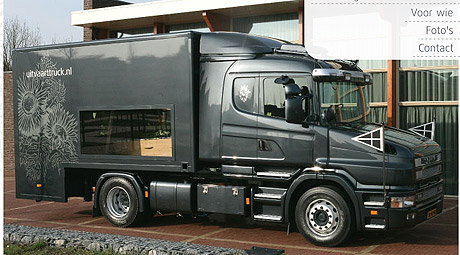 Een echte truck, in stemmige uitvoeringDe Uitvaarttruck maakt gebruik van een echte truck: een Scania van het type C114LA 4 x 2 NA-340.