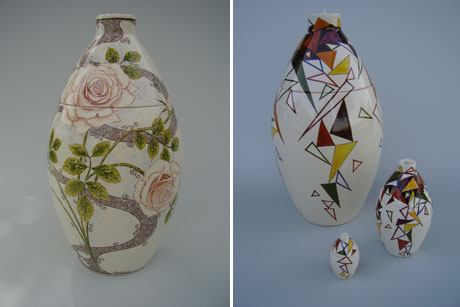 De speciale verven waar hij mee werkt worden geproduceerd in eigen atelier volgens eeuwenoud traditioneel recept. De afbeeldingen op de urnen bestaan uit diverse motieven, ook speciale decoraties op verzoek van familie. Veel ‘natuurlijke’ onderwerpen, maar ook abstracte decoraties. Verder is er ook een urn met het motief ‘Kaartspel’.
