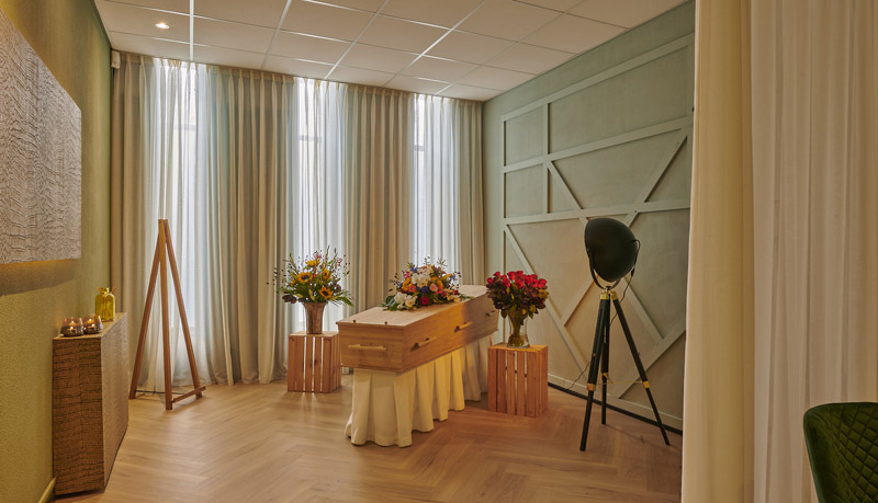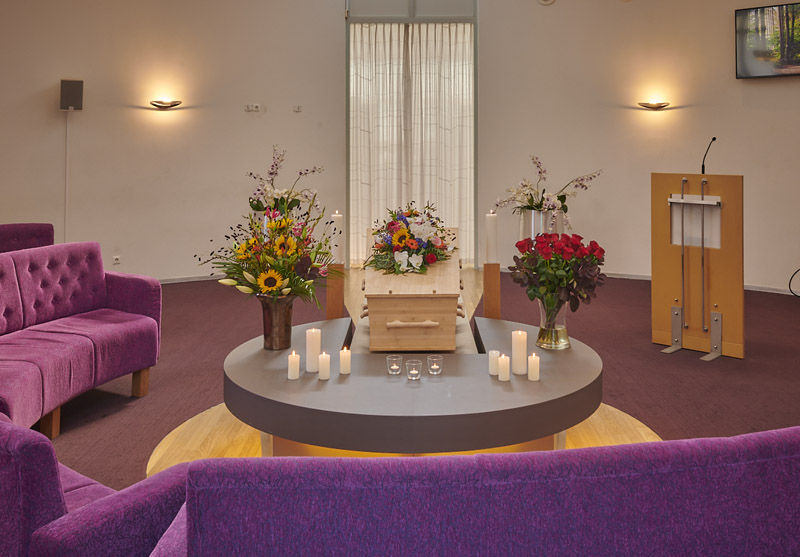 Een complete uitvaart met gebruik van aula voor de crematieplechtigheid en koffiekamer.