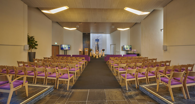 In een bosrijke omgeving aan de rand van Groningen in een rustig park ligt het rijksmonument Stadscrematorium Groningen. Het bijzondere gebouw uit 1963 heeft prachtige voorgevel en een passend eigentijds en sfeervol interieur. Een aangename plek waar u zich zeer welkom voelt in de emotionele periode wanneer u afscheid moet nemen van een overleden dierbare.