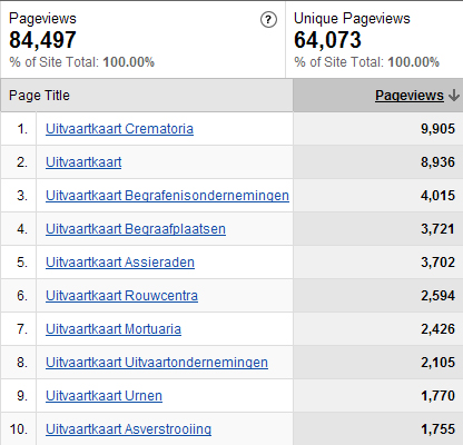 In de onderstaande statistieken die het bezoek aan de site registreren, ziet u dat bezoekers vooral geinteresseerd zijn in de locaties van crematoria, uitvaartondernemingen en, opvallend, aanbieders van assieraden.