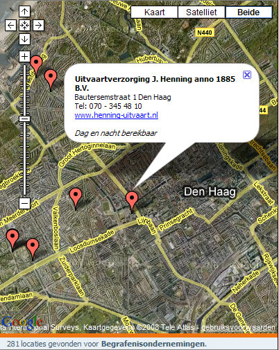 Een dergelijke, op Google Maps gebaseerde toepassing wordt ook wel Google mash-up genoemd. Met Uitvaartkaart.nl kunnen bezoekers eenvoudig zien hoe crematoria, uitvaartcentra, mortuaria e.d. over Nederland verspreid zijn. Klanten van Uitvaart.Com worden kosteloos op de nieuwe site gepresenteerd.