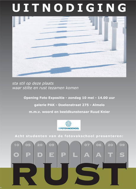 Aanstaande zondag 10 mei wordt de expositie "Op de plaats rust" geopend te Almelo. Deze expositie laten prachtige beeld series zien van 8 jonge Vakfotografen, waarbij de schoonheid van begraafplaatsen in fotografie is vastgelegd.